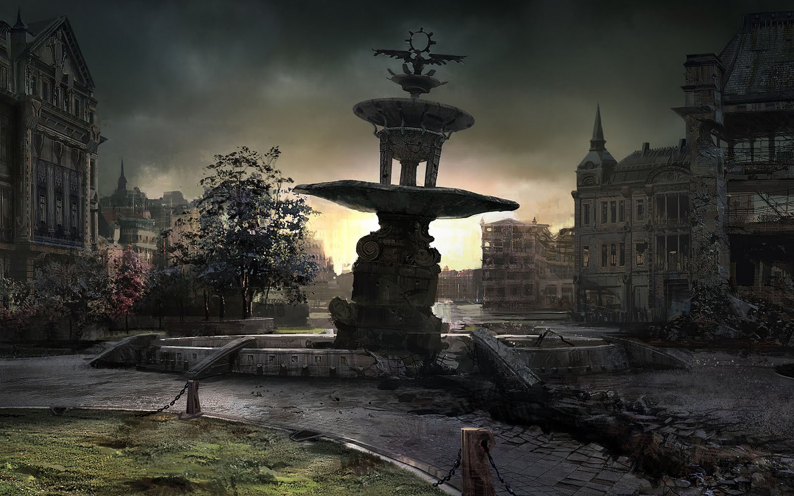 abandoned destroyed fantasy london clock tower artwork storm landscape fire background hd water clouds wallpapers futuristic cityscape destruction future duvar