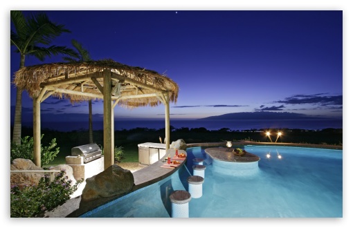 Swimming Pool At Night Ultra HD Desktop Background Wallpaper for : Multi Display Dual Monitor : Tablet : Smartphone