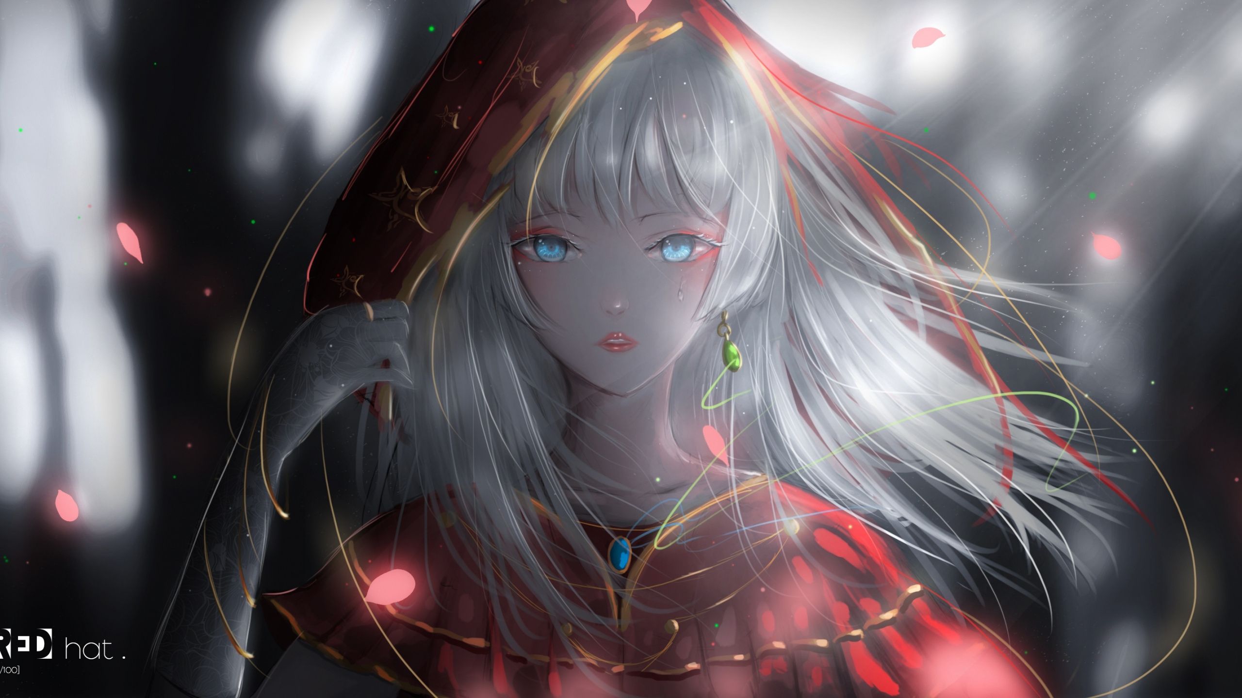 anime hair eyes pretty hood earring gloves petals wallpapers desktop gray iphone hd wallpapermaiden