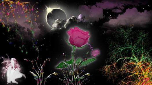 Solve flower magical fairy garden flowers eclipse magic trees stars clouds rose wallpaper 4k jigsaw puzzle online with 180 pieces