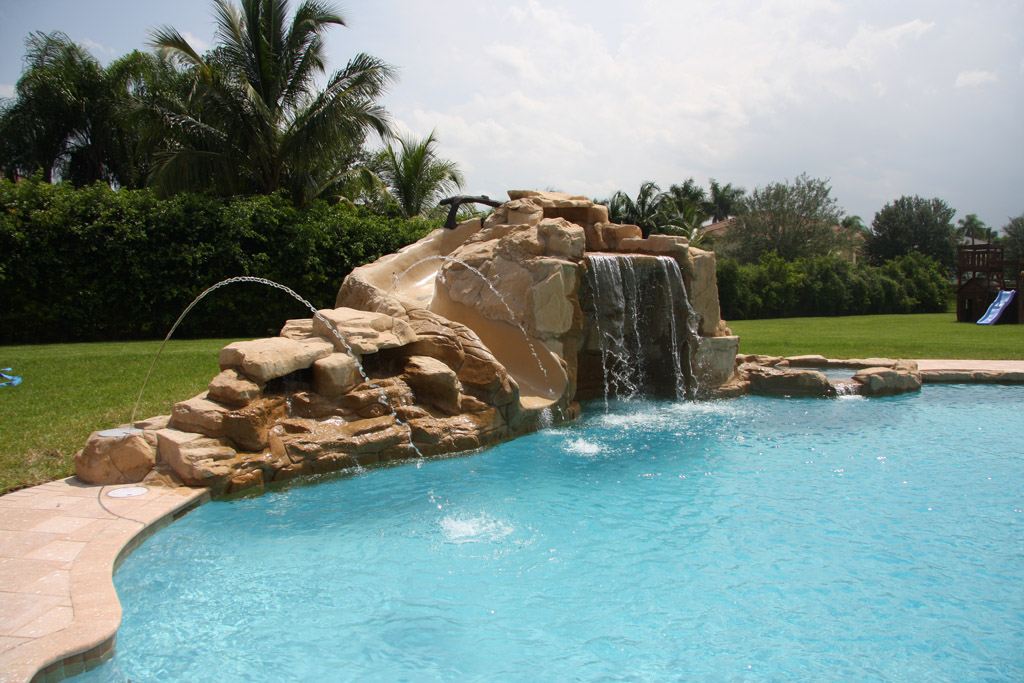 pool pools slides inground slide waterfall waterfalls water backyard fountains swimming sliding outdoor ground spaulding lomets nanobuffet slider landscaping desert